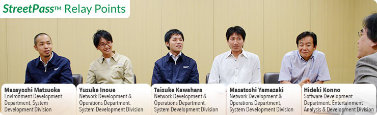 StreetPass Relay Points started on August 6, but in Japan, it began without any advance notice so I think a lot of people felt like it began suddenly out of the blue. In Japan alone, more than two million people are already using the service. I thought I might be able to ask some interesting questions about how this service came to be, so I hurried to gather everyone involved with this project. First, please introduce yourselves. Let’s start with Konno-san.